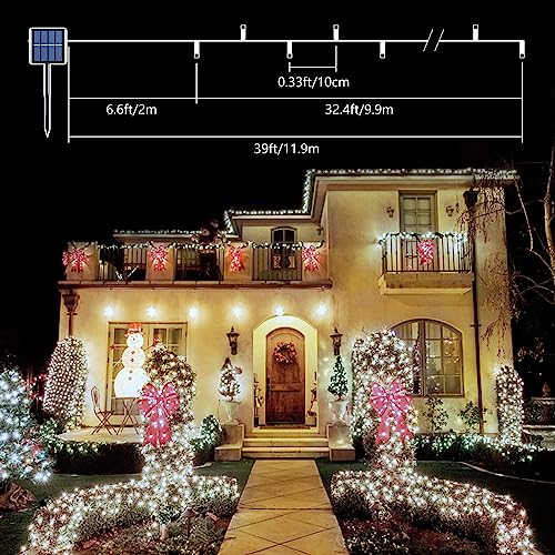 Voolex Confezione da 2 luci a energia solare per esterni, luce bianca fredda, 100 LED, 9 m, impermeabili, con 8 modalità per giardino, patio, recinzione, vacanze, feste, balcone, decorazioni per