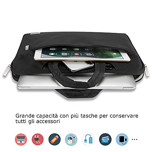 Voova Borsa Computer Portatile,17 17,3 17,4 Pollici, Impermeabile Antiurto, Borsa Porta PC con Tracolla e Maniglia Compatibile con Macbook Air Dell Acer ASUS Samsung Hp Lenovo, Donna Uomo, Nero
