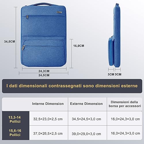 Voova Custodia PC Portatile 13,3-14 Pollici Laptop Sleeve per Macbook Air M1 M2 13 13.3 Macbook Pro 13 14-in.M1 M2 13.6 Macbook Air M2 2022, Borsa Porta PC per Asus Lenovo DELL, Azzurro
