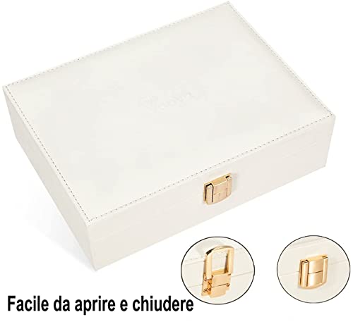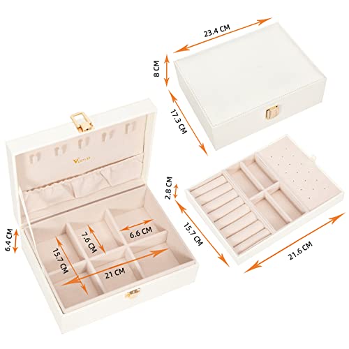 Voova Lusso Porta Gioielli da Camera, Premium Grande 2 Strati Scatola Porta Gioielli per Donna Ragazza, Liscia Pelle PU Porta Gioielli Per Anelli Orecchini Collane Bracciali (Bianco)