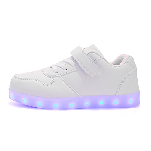 Voovix Bambini LED Light-up Scarpe con Telecomando Low-Top Lampeggiante Sneakers con Luci per Ragazze e Ragazzi(Bianco,EU32)
