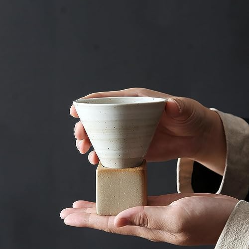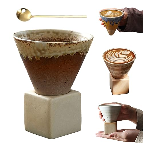 Vopetroy Conical Couture Cup & Base Set,Funnel Ceramic Japanese Coffee Tea Cup,Coarse Ceramic Coffee Cup with Base and Spoon 200ml (C,One Size)