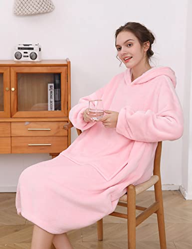 Voqeen Coperta con Cappuccio Donna Uomo Felpe con Cappuccio Coperta Indossabile Pullover con Ampia Tasca Frontale Blanket Hoodie Flanella Sweatshirt Oversize Pigiama(Rosa,Taglia Unica)