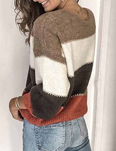 ♥DESIGN COLOR BLOCK: Il design a righe e colorato conferisce a questo maglioni da donna moda un aspetto elegante e lo stesso schema di colori consente a questo maglione di abbinarsi a qualsiasi capo di biancheria intima. Lo scollo tondo e le maniche a lanterna rendono questo top donna semplice e bello. Il punto croce beige è anche usato per decorare la transizione tra i diversi blocchi di colore.