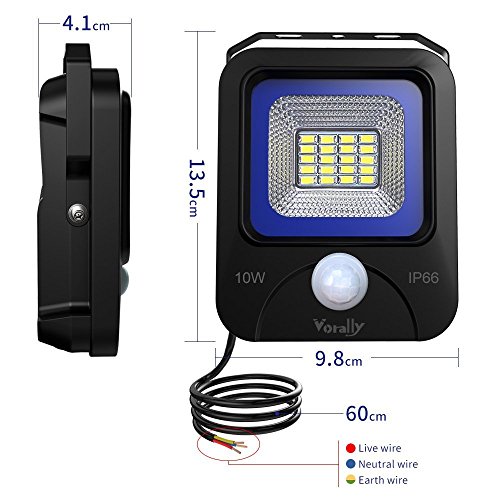 Vorally 10W Faretto LED con rilevatore di movimento bianco freddo - IP66 Proiettore a LED impermeabile 1000LM 6500K AC85-265V