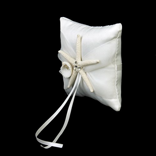 VORCOOL 10 * 10cm anello nuziale cuscino portatore, Starfish Shell cuscino nuziale (bianco)