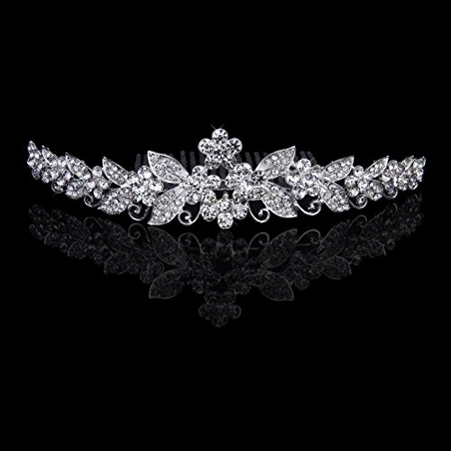 VORCOOL bel matrimonio sposa strass di cristallo lucente corona Tiara cerchietto fascia per capelli con il pettine (argento)
