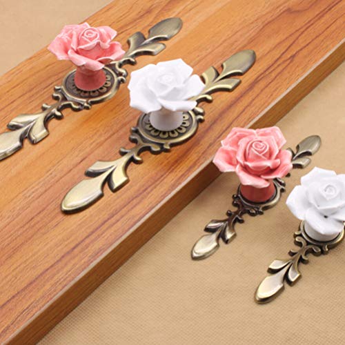 VORCOOL 2 Pezzi Maniglie per Armadio Manopole Fiori con Piastra Posteriore in Bronzo Verde Ceramica Vintage Floreale Rosa Pomelli per Porte con Foro Singolo Accessorio Bar Rosa