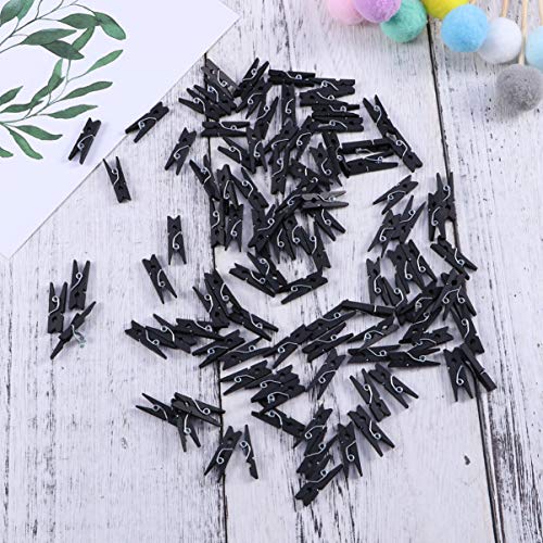 VORCOOL 100 pezzi Mini mollette in legno naturale, mollette da bucato, per fai-da-te, artigianato, decorazione, Legno, Nero, 2,5 x 0,3 cm.