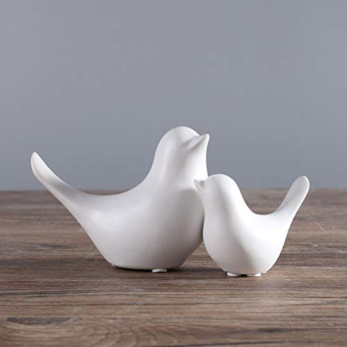 VORCOOL, set di 2 statuette in ceramica bianca per uccellini moderni, per paesaggi, giardino, casa, ufficio, scrivania