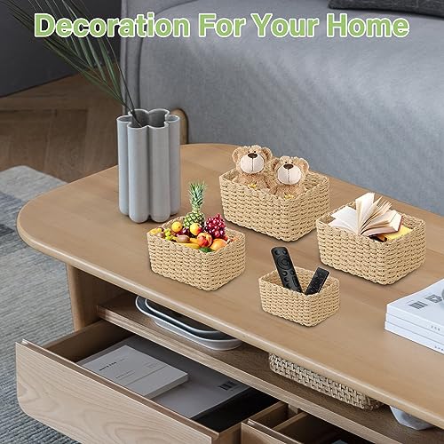 VORHOT Set di 4 Cestini Portaoggetti Intrecciato Corda di Carta, Boho Decor Cesto Porta Giochi Bambini, Impilabile Organizer Fasciatoio, Decorazione Storage Basket per Salotto Camerette Ufficio