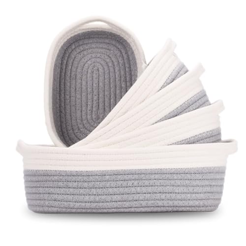 VORHOT 5 Pezzi Cestini Portaoggetti Intrecciato in Corda di Cotone, Cesto Porta Giochi Bambino con Maniglie, Impilabile Scatola di Immagazzinaggio, Organizer Fasciatoio per Giocattoli, Cosmetico