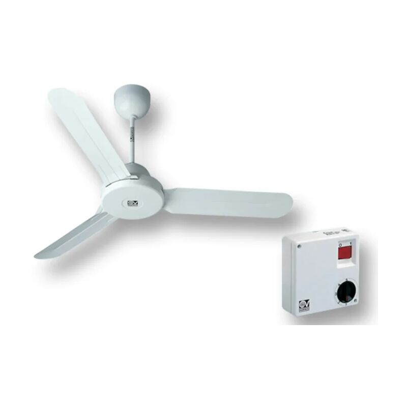 VORTICE - VENTILATORE A SOFFITTO SERIE NORDIK DESIGN 61360 + REGOLATORE DI VELOCITÀ SCNR5 12955 61360 VENTILATORE A SOFFITTO NORDIK DESIGN IS 140/56" BIANCO: • DESIGN PIACEVOLE CHE ARREDA OGNI AMBIENTE, DA CAMERE DA LETTO, A SALE, A NEGOZI ED ALTRI LUOGHI PUBBLICI. • PALE DA 140 COLORE BIANCO. • DOTATO DI MOTORE CON ROTORE ESTERNO AD INDUZIONE PER UN ELEVATO RENDIMENTO AD UNA VELOCITÀ DI REGIME RIDOTTA. • INDICATO ANCHE PER UN FUNZIONAMENTO NOTTURNO, GRAZIE ALLE PALE IN LAMIERA D'ACCIAIO VERNICIATA CON PROFILO ACCURATAMENTE STUDIATO PER GARANTIRE UN FUNZIONAMENTO PARTICOLARMENTE SILENZIOSO. • APPARECCHIO COSTRUITO IN CONFORMITÀ ALLE NORME CEI EN 60355-2-80. • PARTI METALLICHE VERNICIATE CON POLVERE POLIESTERE ANTIGRAFFIO. • FORNITO CON ASTA DI SOSTEGNO IN ACCIAIO DI 375 MM. 12955 REGOLATORE DI VELOCITÀ SCNR5: • SCATOLA COMANDI A 5 VELOCITA' • CARICO MASSIMO 100 WATT • COMPATIBILE CON VENTILATORI SERIE NORDIK DECOR e NORDIK DESIGN 1S DESIGN IS 140/56" BIANCO 61360 + 12955 Diametro