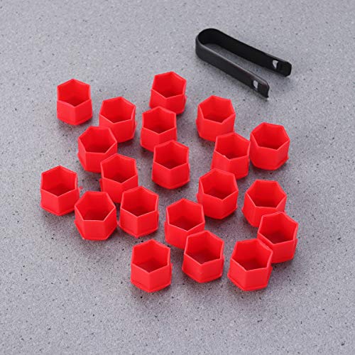 Vosarea - Bullone di protezione 21 in 1 per dadi della ruota e coprimozzi esagonali per dadi della ruota, universale, con pinza rossa, 17 mm