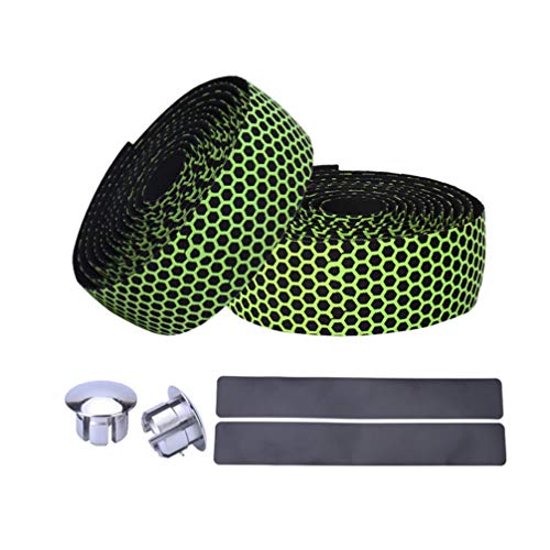 Vosarea - 2 rotoli di nastro per manubrio bicicletta, con tappi terminali, per bici da corsa e ciclismo (verde)