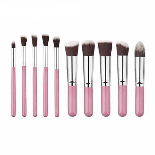 VOSMEP Spazzola di Trucco, 10 Pezzi Professionale Set di Cosmetici, Ideale per il Trucco Professionale o per uso Domestico FACILE DA TRASPORTARE Rosa Argento HB7
