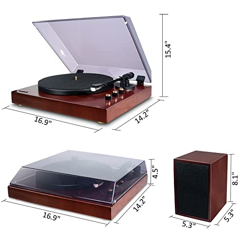 Vosterio Giradischi, Giradischi Vinile, Giradischi Sistema HiFi Bluetooth, Lettore Vinile Contrappeso Regolabile e Cartuccia Magnetica, Altoparlante Esterno 2 x15 w rms, Mogano