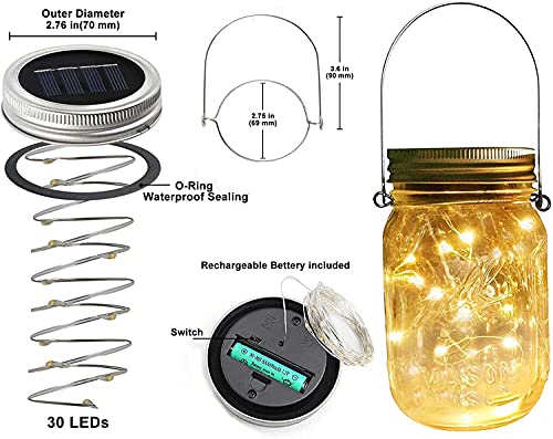 ⭐【Ampiamente Usato】Le luci solari dei barattoli di vetro creano un'atmosfera calda e sono perfette per decorare la tua casa. Allo stesso tempo, le luci solari sono dotate di ganci, che sono molto comodi da usare nel tuo cortile, patio, prato, giardino e scala.