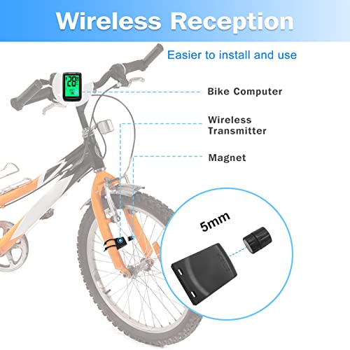VOTUKU Contachilometri Bici Senza Fili, Contachilometri per Bici Impermeabile,Contachilometri Bici Senza Fili,Contachilometri Bici Wireless con LCD Display Retroilluminato