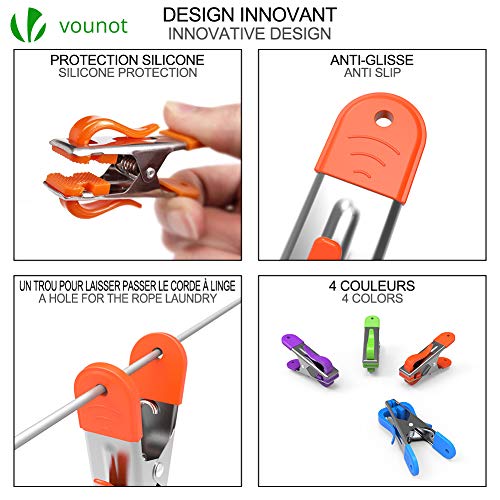 VOUNOT Mollette Bucato Acciaio Inox, 40 Pezzi, con Impugnatura Morbida e Gancio e Pastiglie di Plastica, 4 Colori