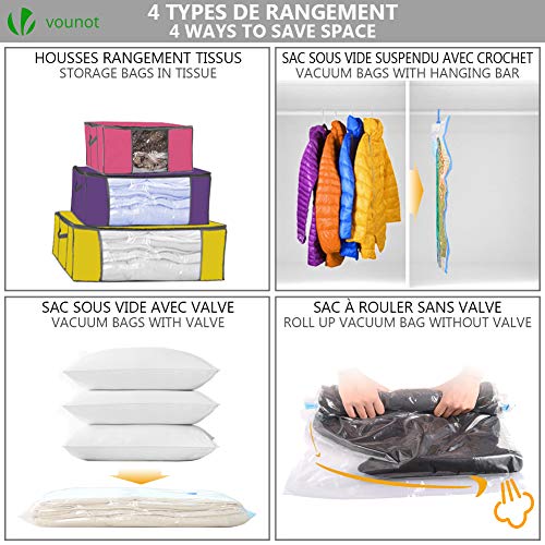 VOUNOT 4 Pezzi Scatole per Vestiti con 17 Pezzi Sacchetti Sottovuoto Salvaspazio Riutilizzabili, per Lenzuola, Piumoni, Cuscini, Coperte