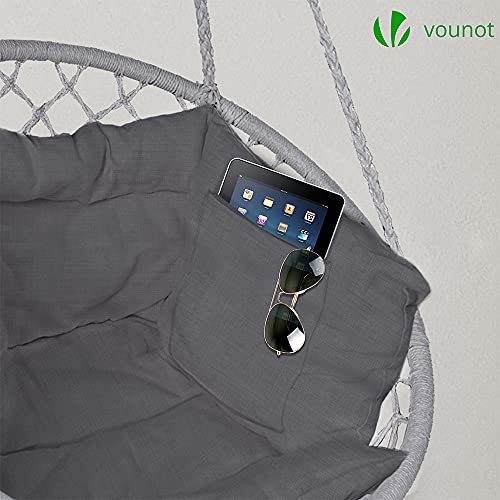 VOUNOT Poltrona Sospesa da Giardino, Sedia Amaca Altalena Macrame con Cuscino, Ø80cm Capacità 120 kg, per Interni Esterno Giardino, Grigio