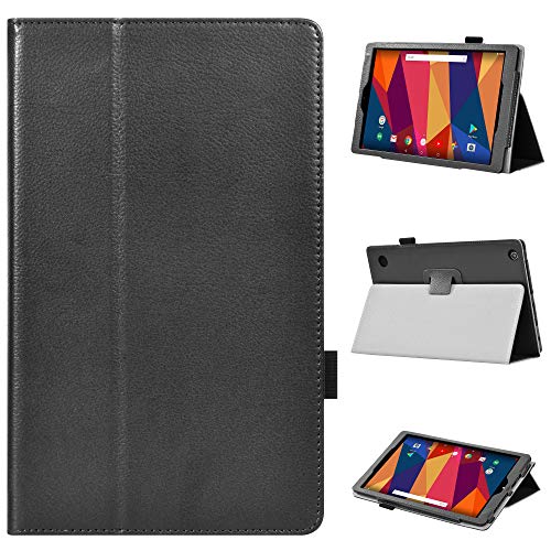 Vovipo - Custodia per tablet Alba da 10”, in ecopelle, con copertina pieghevole per supporto nero Nero