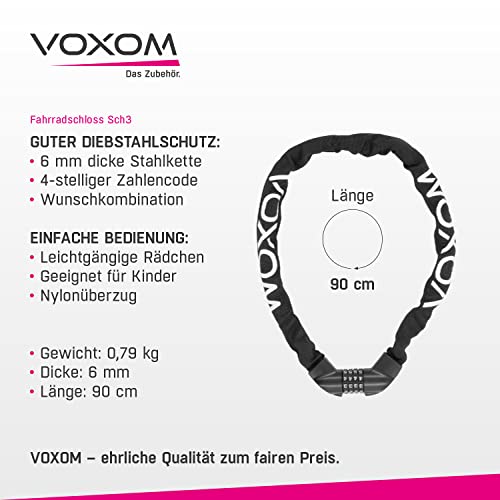 Voxom - Lucchetto per bicicletta Sch3, nero, 6 x 900 mm