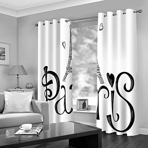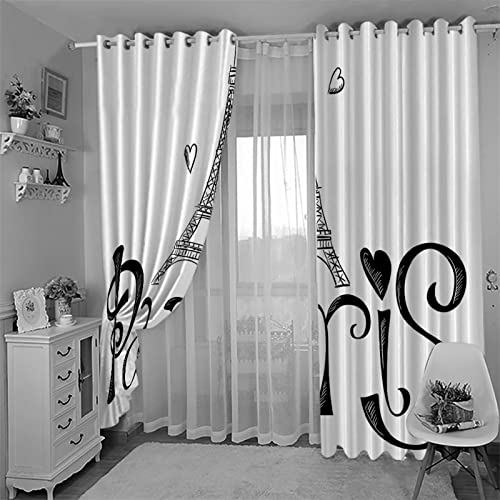 VOYADE Tende Oscuranti Per Interni 2 Pezzi 3D Torre Eiffel In Bianco E Nero Motivo Tende Oscuranti Camera Da Letto, Soggiorno Finestre Tenda Oscurante Termica Isolante Con Occhielli 140X160cm
