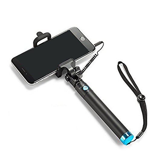 VOYAGE - Bastone per selfie estensibile [senza batteria] con cavo per iPhone 6s 6 5, Galaxy, Nexus e altri smartphone