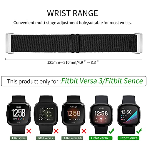 Vozehui Compatibile con Fitbit Sense/Fitbit Versa 3, cinturino di ricambio sportivo in nylon morbido e traspirante, elastico regolabile, traspirante e intrecciato per Fitbit Versa 3/Fitbit Sense
