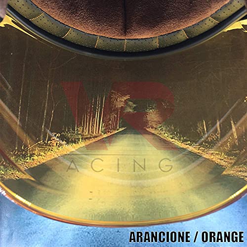 VRacing Visiera Casco 3 Bottoni Universale Casco jet e integrale Visiera Bubble a Bolla Custom retrò Vintage con meccanismo 3 altezze regolabile flip up incluso (Arancione)