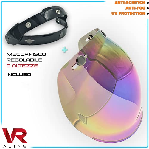 VRacing Visiera Casco 3 Bottoni Universale Casco jet e integrale Visiera Bubble a Bolla Custom retrò Vintage con meccanismo 3 altezze regolabile flip up incluso (Iridium)