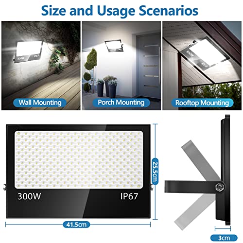 VRFMALIY 300W Faretto LED da Esterno, 30000LM 7000K Faretti LED,IP67 Impermeabile Super Luminoso Bianco Freddo Luce di Sicurezza per Casa, Cortile, Giardino, Palestra, Garage