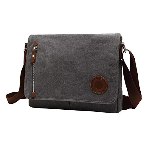 VRIKOO Casual Canvas Satchel Messenger Bag Working Shoulder Crossbody Book Bags for Men and Women (Grigio)