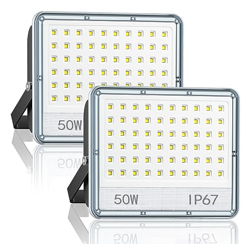 VRTOGTHE Faretto LED Da Esterno - 2 Pezzi 50W 5000LM Faro LED Esterno, IP67 Impermeabile e Staffa Regolabile A 180°, Faretti LED Esterno Bianco Freddo 7000K per Strada, Patio, Giardino, Garage