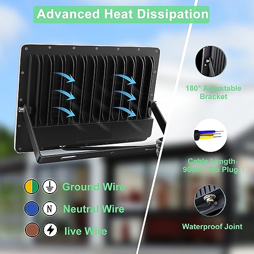 【Efficiente dissipazione del calore】Faretti LED esternorealizzato con materiale in alluminio di alta qualità e speciale struttura di dissipazione del calore di design ad alette che garantisce un'eccellente conducibilità termica e un rapido raffreddamento, un efficace controllo della temperatura delle perle della lampada. Il che rende la faro da esternod urevole stabile,affidabile e la durata della vita fino a 50.000 ore, riducendo notevolmente i costi di manutenzione.