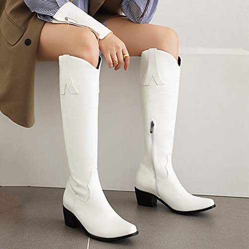 Vrupons Stivali da cowboy da donna alti al ginocchio con punta quadrata e tacco basso, bianco, 38 EU