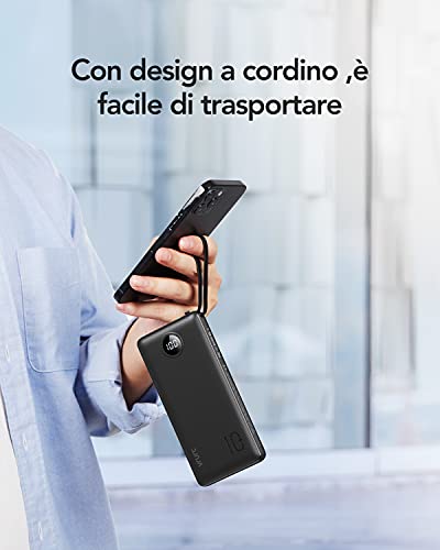Le 2 porte di ingresso (una porta USB C e un cavo USB) offrono due opzioni per la ricarica rapida.