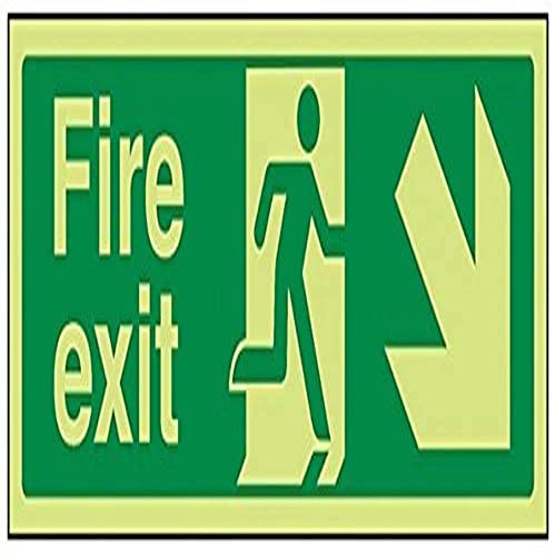 Vsafety 14006 ax-g "Uscita antincendio, freccia verso il basso diritto" Glow In Dark, 1 mm, in plastica, paesaggio, 300 mm x 100 mm, colore: verde