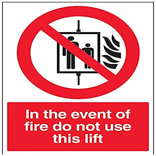 Vsafety 55030bc-s "in caso di incendio non usare questo Lift" divieto di macchine, Autoadesivo, segno, verticale, 300 mm x 400 mm, colore: nero/rosso