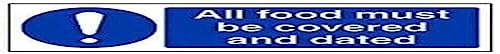 VSafety All Food Must Be Covered and Dated Sign - Paesaggio - 300 mm x 100 mm - vinile autoadesivo