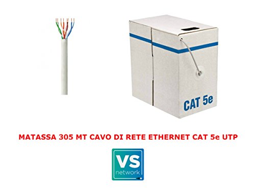 Vsnetwork Matassa 305 MT Metri Cavo di Rete UTP Cat 5E LAN Ethernet M Bobina 5 E Internet ADSL Router Grigio Access Point
