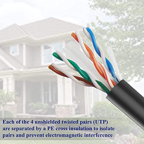 Vsnetwork Matassa 100 MT Metri Cavo di rete Schermato Impermeabile per uso esterno ed interramento UTP CAT6 CCA RJ45 Patch Cord Ethernet Gigabit 1000 Mbps 550 MHz Nero (100)
