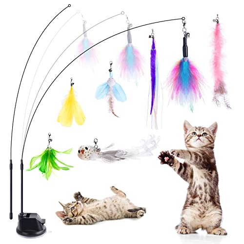 【Miglior Regalo】 Il set ha una base a ventosa forte da 1 pezzo, un'asta elastica da 2 pezzi, una testina di ricambio per il giocattolo di piume da 7 pezzi. Aiuta a mantenere il tuo gatto felice e in salute con questo giocattolo per gatti divertente, ricco e durevole. È il miglior regalo per i gatti.
