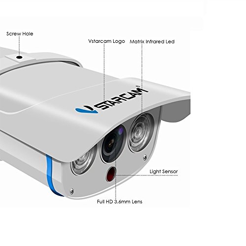 Vstarcam 720P Videocamera di Sorveglianza, Wireless Telecamera Esterno IP Camera di Sicurezza Waterproof IP67, Supporto Memoria max 64G, IR Visione Notturna 50ft, rilevatore di movimento e funzione di Alarm Push Visualizzazione Remota da iOS Android Tablet PC