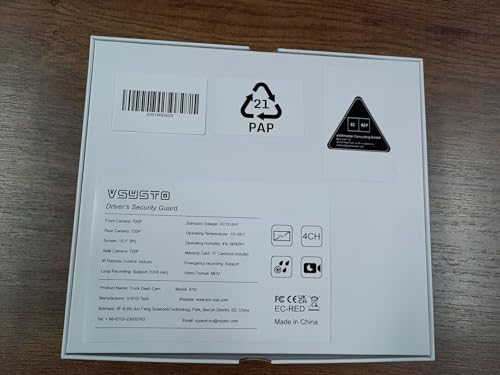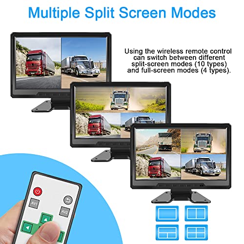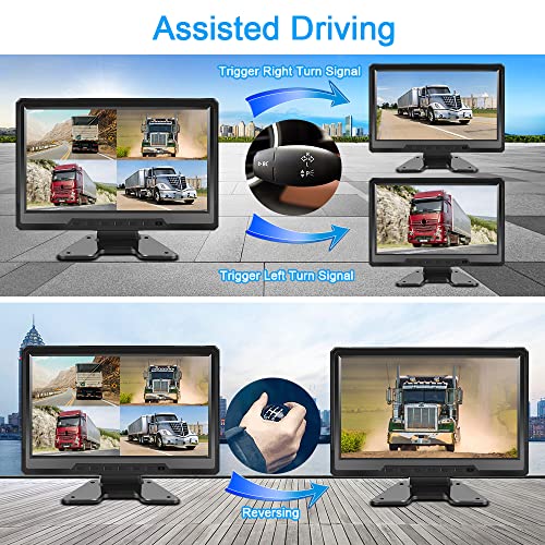 VSYSTO 4CH Dash cam per camion 720P Schermo da 10'' Videocamera di backup del veicolo Vista laterale posteriore anteriore, con obiettivo per visione notturna a infrarossi per semirimorchio