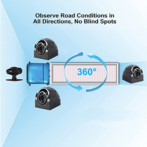 VSYSTO 4CH Dash Cam, Visione Notturna a Infrarossi GPS 7'' Monitor 1080P Anteriore e Laterale e Telecamera Posteriore di Backup per Semirimorchio Camion Van Trattore (7 pollici+1080P telecamere*4)