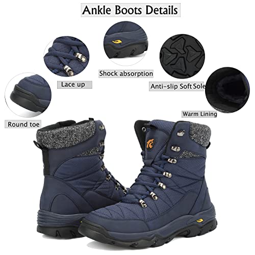 VTASQ Stivali da neve invernali da uomo Scarpe invernali foderate calde impermeabili Stivaletti caldi antiscivolo per esterni Scarpe da trekking termiche leggere, blu, 12 UK