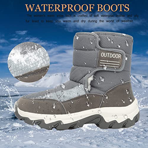 VTASQ Stivali Donna Invernali Foderato Caldo Stivali da Neve Antiscivolo metà Polpaccio all'aperto 36-42 EU Grigio 36EU